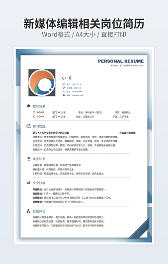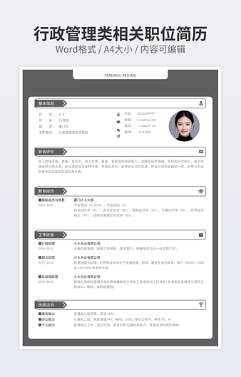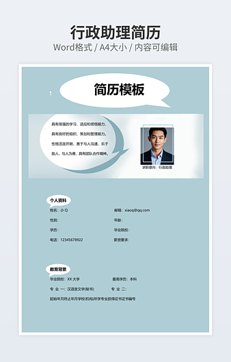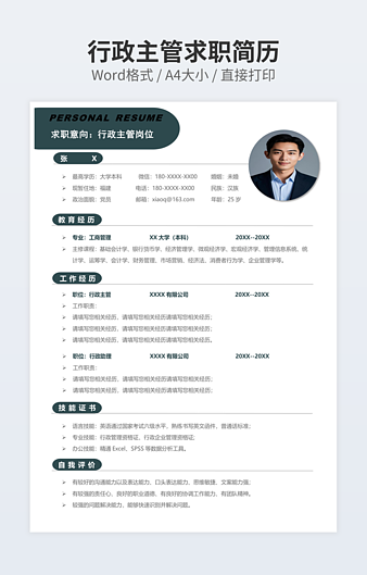 【特殊限制】设计师仅对作品中独创性部分享有著作权,对作品中含有的国旗、国徽等政治图案不享有权利,仅作为作品整体效果的示例展示,禁止商用。 相关关键词: 项目 主管 助理 简历 超优秀