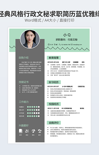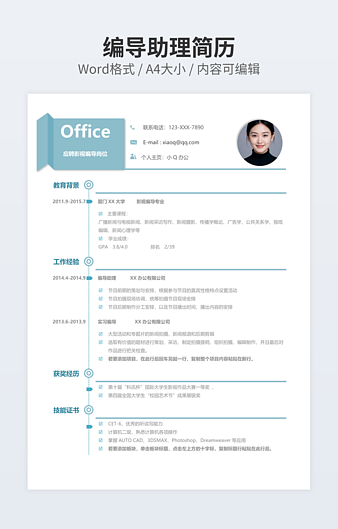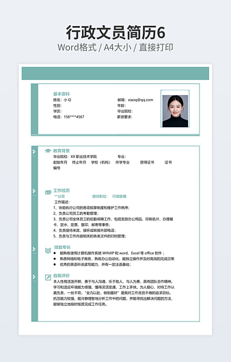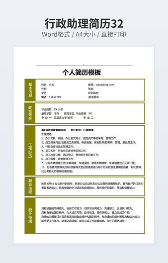 本作品内容为项目主管助理简历下载,大小为663.35KB,作品为高清大图模板,格式为docx, 属于文职类模板,作品模板源文件下载后可用编辑替换,模板中如有人物画像仅供参考禁止商用。小Q办公网-提供简历,PPT,Word,Excel优质模板素材下载模版平台,拥有海量的工作总结、竞聘求职、年终颁奖、计划书等。 通过小Q办公网下载文职类模板源文件编辑修改源文件文字和图片即可使用。