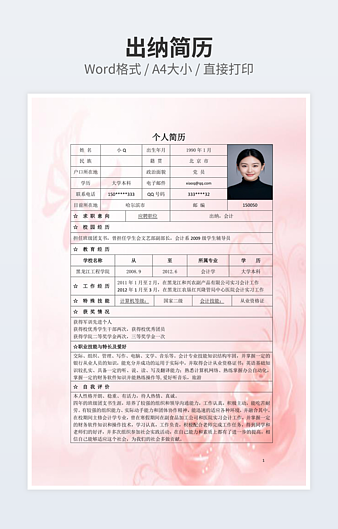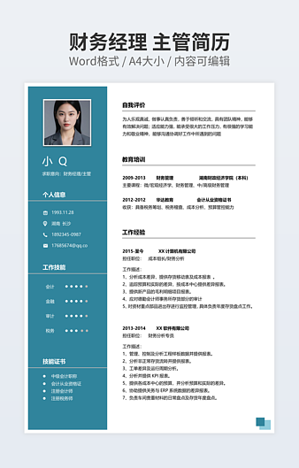 本作品内容为电算化会计简历下载,大小为13.86KB,作品为高清大图模板,格式为docx, 属于会计出纳模板,作品模板源文件下载后可用编辑替换,模板中如有人物画像仅供参考禁止商用。小Q办公网-提供简历,PPT,Word,Excel优质模板素材下载模版平台,拥有海量的工作总结、竞聘求职、年终颁奖、计划书等。 通过小Q办公网下载会计出纳模板源文件编辑修改源文件文字和图片即可使用。