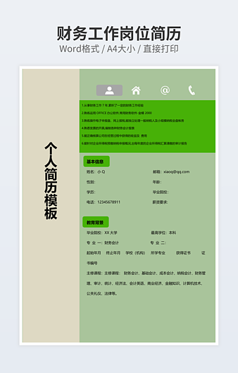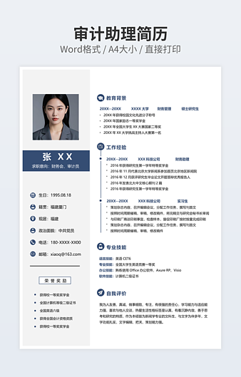 【特殊限制】设计师仅对作品中独创性部分享有著作权,对作品中含有的国旗、国徽等政治图案不享有权利,仅作为作品整体效果的示例展示,禁止商用。 相关关键词: 电算化 会计 简历 优秀