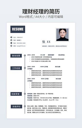 上一篇:国际金融专业简历下一篇:财务会计简历为您推荐