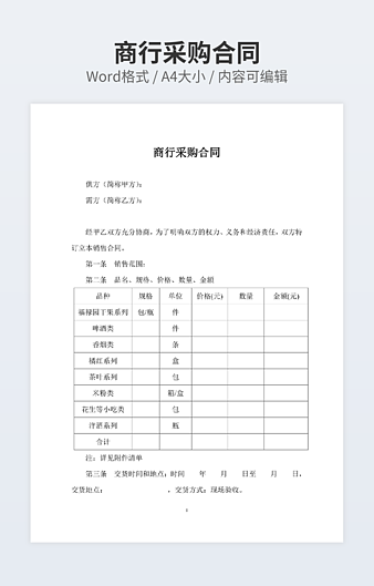 本作品内容为酒店布草采购合同下载,大小为60KB,作品为高清大图模板,格式为doc, 属于采购合同模板,作品模板源文件下载后可用编辑替换,模板中如有人物画像仅供参考禁止商用。小Q办公网-提供简历,PPT,Word,Excel优质模板素材下载模版平台,拥有海量的工作总结、竞聘求职、年终颁奖、计划书等。 通过小Q办公网下载采购合同模板源文件编辑修改源文件文字和图片即可使用。
