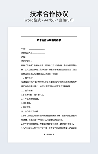 【特殊限制】设计师仅对作品中独创性部分享有著作权,对作品中含有的国旗、国徽等政治图案不享有权利,仅作为作品整体效果的示例展示,禁止商用。 相关关键词: 转让技术 秘密 补偿贸易 合作生产 合同书