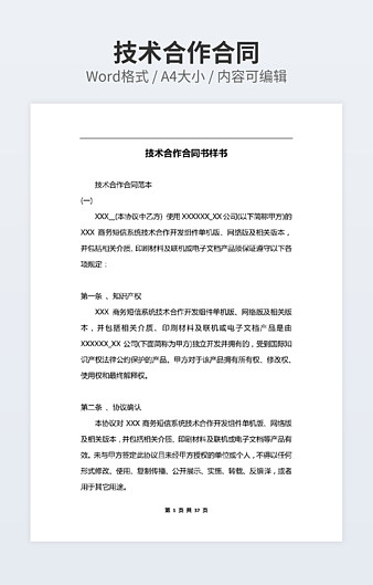 本作品内容为转让技术秘密 补偿贸易合作生产合同书 下载,大小为23KB,作品为高清大图模板,格式为docx, 属于技术合作模板,作品模板源文件下载后可用编辑替换,模板中如有人物画像仅供参考禁止商用。小Q办公网-提供简历,PPT,Word,Excel优质模板素材下载模版平台,拥有海量的工作总结、竞聘求职、年终颁奖、计划书等。 通过小Q办公网下载技术合作模板源文件编辑修改源文件文字和图片即可使用。