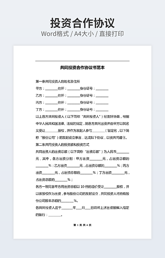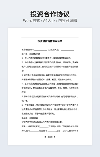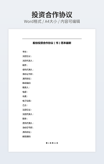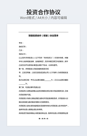 本作品内容为商业用房委托投资经营合作合同书下载,大小为22.47KB,作品为高清大图模板,格式为docx, 属于投资合作模板,作品模板源文件下载后可用编辑替换,模板中如有人物画像仅供参考禁止商用。小Q办公网-提供简历,PPT,Word,Excel优质模板素材下载模版平台,拥有海量的工作总结、竞聘求职、年终颁奖、计划书等。 通过小Q办公网下载投资合作模板源文件编辑修改源文件文字和图片即可使用。