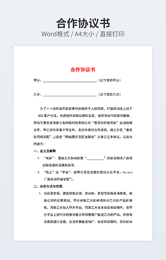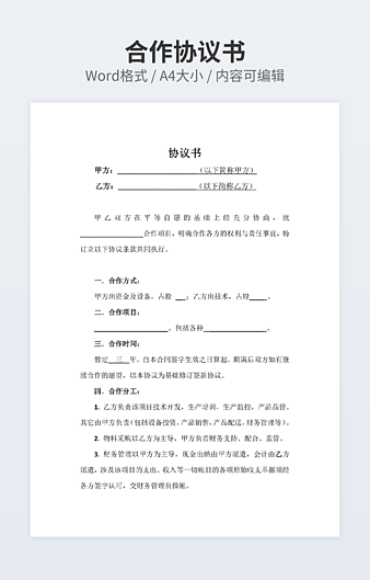本作品内容为单位与旅行社合作协议 下载,大小为16.12KB,作品为高清大图模板,格式为doc, 属于合伙协议模板,作品模板源文件下载后可用编辑替换,模板中如有人物画像仅供参考禁止商用。小Q办公网-提供简历,PPT,Word,Excel优质模板素材下载模版平台,拥有海量的工作总结、竞聘求职、年终颁奖、计划书等。 通过小Q办公网下载合伙协议模板源文件编辑修改源文件文字和图片即可使用。