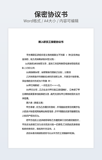 【特殊限制】设计师仅对作品中独创性部分享有著作权,对作品中含有的国旗、国徽等政治图案不享有权利,仅作为作品整体效果的示例展示,禁止商用。 相关关键词: 离职 经济补偿 协议书