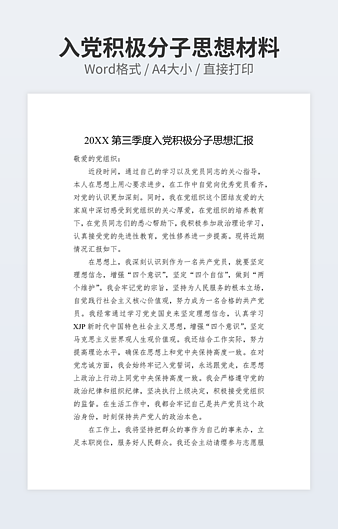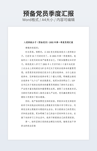 本作品内容为第一季度党员思想报告下载,大小为13.51KB,作品为高清大图模板,格式为docx, 属于思想汇报模板,作品模板源文件下载后可用编辑替换,模板中如有人物画像仅供参考禁止商用。小Q办公网-提供简历,PPT,Word,Excel优质模板素材下载模版平台,拥有海量的工作总结、竞聘求职、年终颁奖、计划书等。 通过小Q办公网下载思想汇报模板源文件编辑修改源文件文字和图片即可使用。