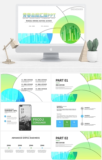 【特殊限制】设计师仅对作品中独创性部分享有著作权,对作品中含有的国旗、国徽等政治图案不享有权利,仅作为作品整体效果的示例展示,禁止商用。 相关关键词: 绿色 简约 工作总结 计划 PPT 模板