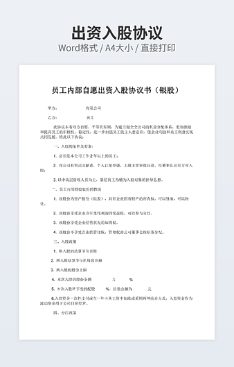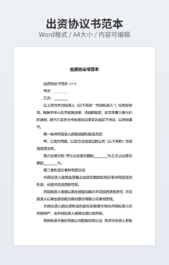 本作品内容为设立有限责任公司出资协议新下载,大小为14.14KB,作品为高清大图模板,格式为docx, 属于出资协议模板,作品模板源文件下载后可用编辑替换,模板中如有人物画像仅供参考禁止商用。小Q办公网-提供简历,PPT,Word,Excel优质模板素材下载模版平台,拥有海量的工作总结、竞聘求职、年终颁奖、计划书等。 通过小Q办公网下载出资协议模板源文件编辑修改源文件文字和图片即可使用。