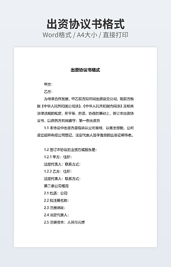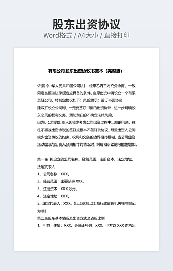 【特殊限制】设计师仅对作品中独创性部分享有著作权,对作品中含有的国旗、国徽等政治图案不享有权利,仅作为作品整体效果的示例展示,禁止商用。 相关关键词: 设立 有限责任 公司 出资 协议
