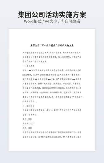 【特殊限制】设计师仅对作品中独创性部分享有著作权,对作品中含有的国旗、国徽等政治图案不享有权利,仅作为作品整体效果的示例展示,禁止商用。 相关关键词: 开展 XX 主题活动 方案