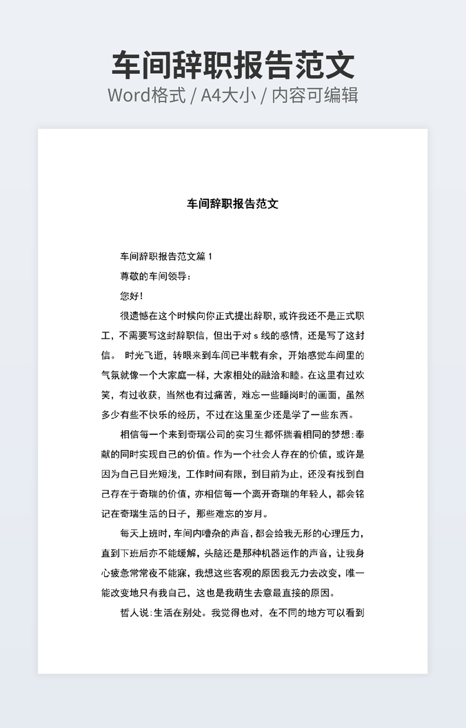 车间辞职报告范文