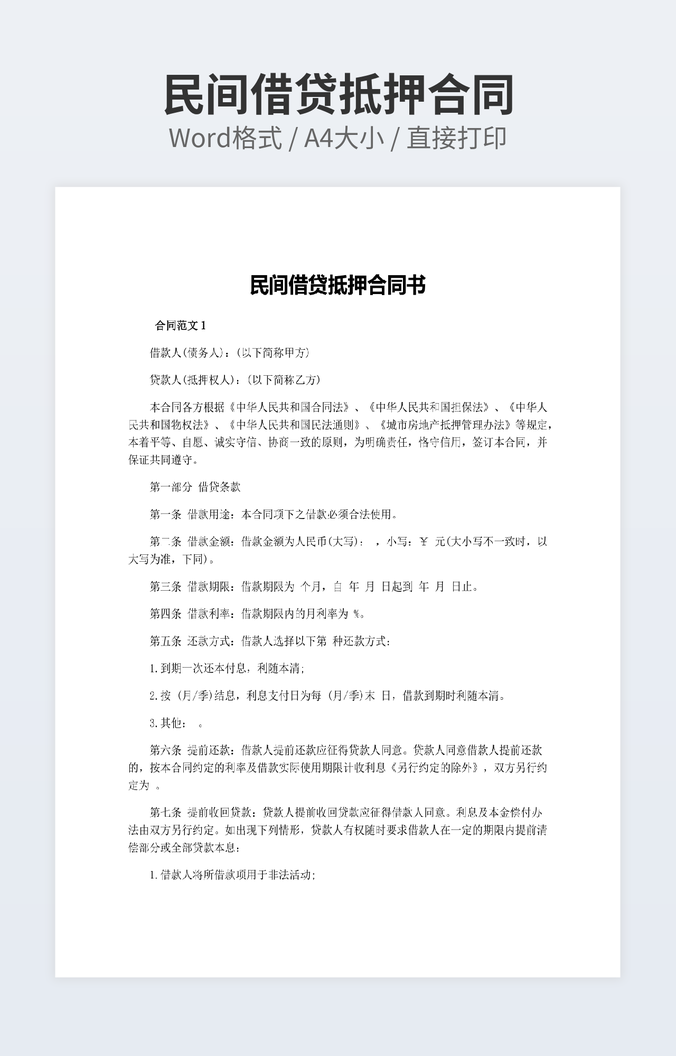 民间借贷抵押合同范本_民间借贷抵押合同书