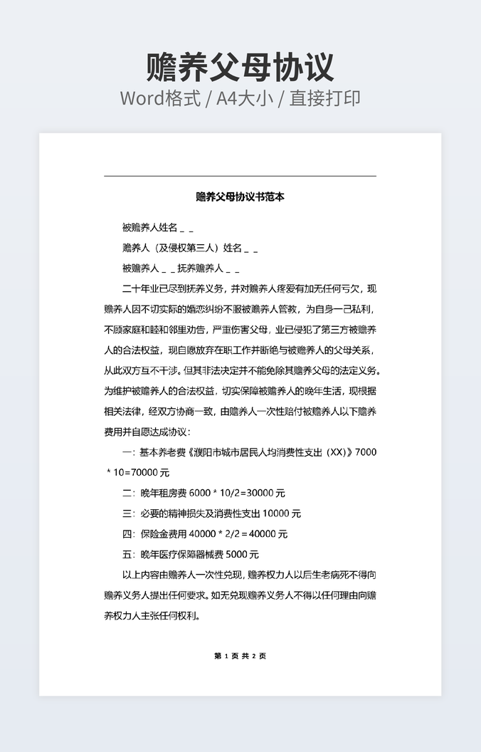 赡养父母协议书范本