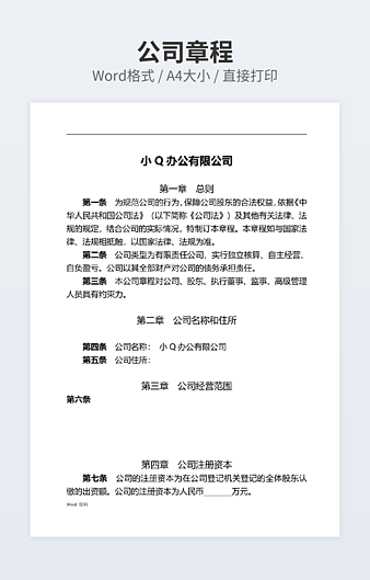 本作品内容为重庆xxx有限责任公司章程下载,大小为52KB,作品为高清大图模板,格式为doc, 属于公司章程 模板,作品模板源文件下载后可用编辑替换,模板中如有人物画像仅供参考禁止商用。小Q办公网-提供简历,PPT,Word,Excel优质模板素材下载模版平台,拥有海量的工作总结、竞聘求职、年终颁奖、计划书等。 通过小Q办公网下载公司章程 模板源文件编辑修改源文件文字和图片即可使用。