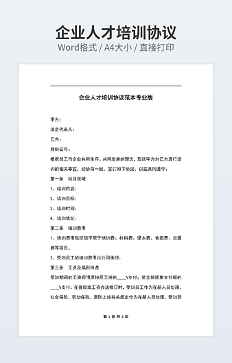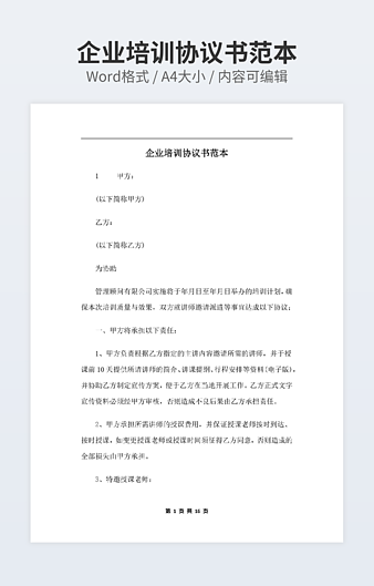 本作品内容为企业培训就业协议书下载,大小为16.39KB,作品为高清大图模板,格式为docx, 属于企业培训模板,作品模板源文件下载后可用编辑替换,模板中如有人物画像仅供参考禁止商用。小Q办公网-提供简历,PPT,Word,Excel优质模板素材下载模版平台,拥有海量的工作总结、竞聘求职、年终颁奖、计划书等。 通过小Q办公网下载企业培训模板源文件编辑修改源文件文字和图片即可使用。