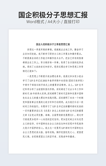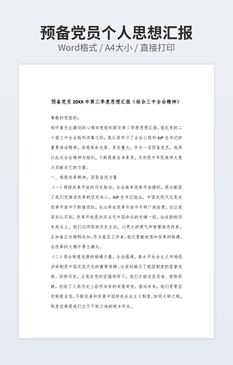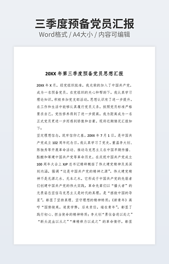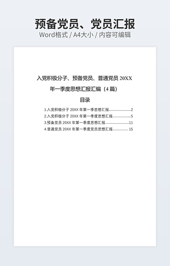 【特殊限制】设计师仅对作品中独创性部分享有著作权,对作品中含有的国旗、国徽等政治图案不享有权利,仅作为作品整体效果的示例展示,禁止商用。 相关关键词: 预备党员 季度 思想汇报
