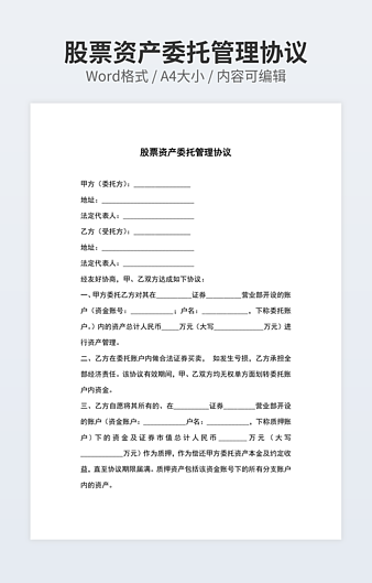 【特殊限制】设计师仅对作品中独创性部分享有著作权,对作品中含有的国旗、国徽等政治图案不享有权利,仅作为作品整体效果的示例展示,禁止商用。 相关关键词: 证券 资产 委托 管理 合同