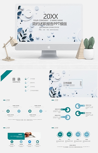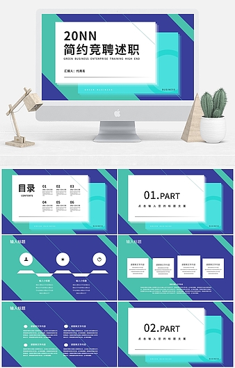 【特殊限制】设计师仅对作品中独创性部分享有著作权,对作品中含有的国旗、国徽等政治图案不享有权利,仅作为作品整体效果的示例展示,禁止商用。 相关关键词: 绿色 简约 竞聘 述职 职场 企业 汇报 工作