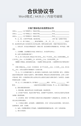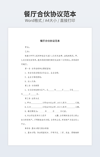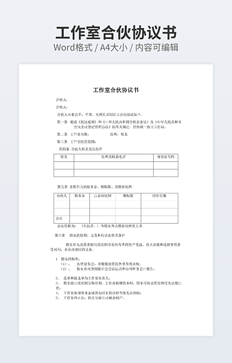 【特殊限制】设计师仅对作品中独创性部分享有著作权,对作品中含有的国旗、国徽等政治图案不享有权利,仅作为作品整体效果的示例展示,禁止商用。 相关关键词: 合伙 经营 合作 协议书