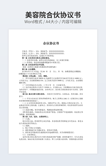 本作品内容为合伙经营合作协议书下载,大小为31KB,作品为高清大图模板,格式为doc, 属于合伙协议模板,作品模板源文件下载后可用编辑替换,模板中如有人物画像仅供参考禁止商用。小Q办公网-提供简历,PPT,Word,Excel优质模板素材下载模版平台,拥有海量的工作总结、竞聘求职、年终颁奖、计划书等。 通过小Q办公网下载合伙协议模板源文件编辑修改源文件文字和图片即可使用。
