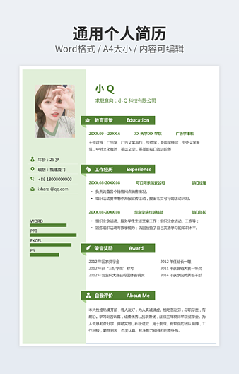 本作品内容为程序员求职简历下载,大小为115.5KB,作品为高清大图模板,格式为doc, 属于精品简历模板,作品模板源文件下载后可用编辑替换,模板中如有人物画像仅供参考禁止商用。小Q办公网-提供简历,PPT,Word,Excel优质模板素材下载模版平台,拥有海量的工作总结、竞聘求职、年终颁奖、计划书等。 通过小Q办公网下载精品简历模板源文件编辑修改源文件文字和图片即可使用。