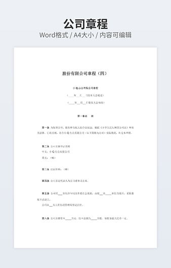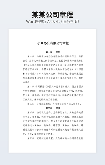 【特殊限制】设计师仅对作品中独创性部分享有著作权,对作品中含有的国旗、国徽等政治图案不享有权利,仅作为作品整体效果的示例展示,禁止商用。 相关关键词: 通用 公司 章程 下载