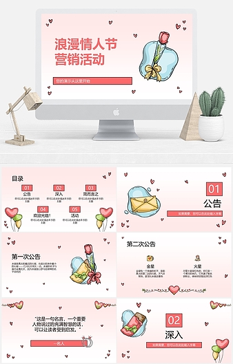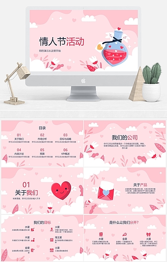 本作品内容为3D卡通风浪漫情人节PPT模板下载,大小为6.83MB,作品为高清大图模板,格式为pptx, 属于情人节模板,作品模板源文件下载后可用编辑替换,模板中如有人物画像仅供参考禁止商用。小Q办公网-提供简历,PPT,Word,Excel优质模板素材下载模版平台,拥有海量的工作总结、竞聘求职、年终颁奖、计划书等。 通过小Q办公网下载情人节模板源文件编辑修改源文件文字和图片即可使用。