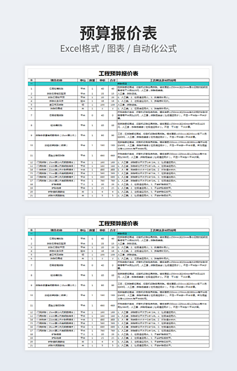 【特殊限制】设计师仅对作品中独创性部分享有著作权,对作品中含有的国旗、国徽等政治图案不享有权利,仅作为作品整体效果的示例展示,禁止商用。 相关关键词: 装修 工程预算 报价 excel 表格 模板 优秀