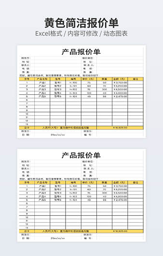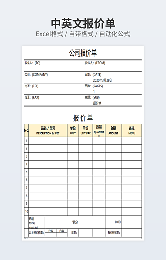本作品内容为报价单 下载,大小为19.37KB,作品为高清大图模板,格式为xlsx, 属于报价单模板,作品模板源文件下载后可用编辑替换,模板中如有人物画像仅供参考禁止商用。小Q办公网-提供简历,PPT,Word,Excel优质模板素材下载模版平台,拥有海量的工作总结、竞聘求职、年终颁奖、计划书等。 通过小Q办公网下载报价单模板源文件编辑修改源文件文字和图片即可使用。