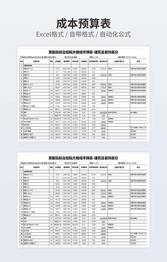 本作品内容为工程施工费预算表excel模板下载,大小为16.92KB,作品为高清大图模板,格式为xlsx, 属于建筑工程预算表模板,作品模板源文件下载后可用编辑替换,模板中如有人物画像仅供参考禁止商用。小Q办公网-提供简历,PPT,Word,Excel优质模板素材下载模版平台,拥有海量的工作总结、竞聘求职、年终颁奖、计划书等。 通过小Q办公网下载建筑工程预算表模板源文件编辑修改源文件文字和图片即可使用。